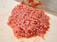 - 梅干しはみじん切りにして、裏ごしする。