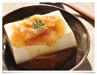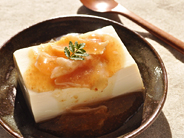 - 器に豆腐をのせ、3のあんをかける。仕上げに木の芽を飾る。