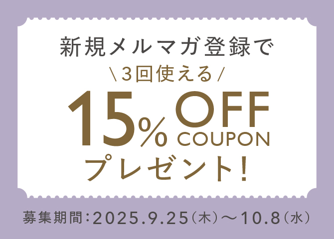 〈オンラインショップ限定〉メルマガ登録で毎月使える「15%OFFクーポン」